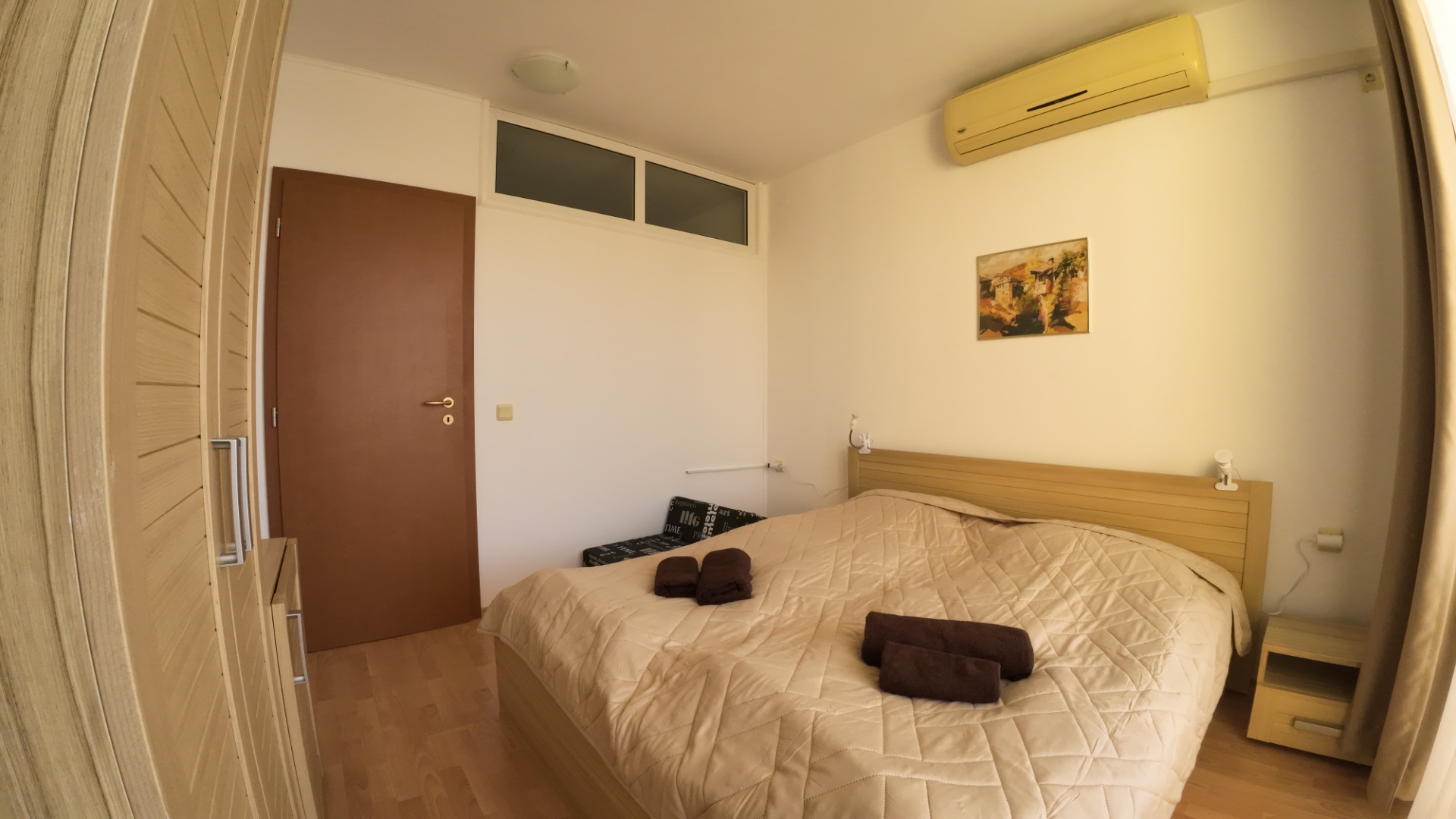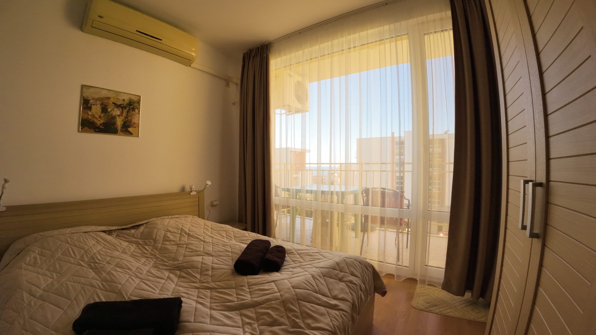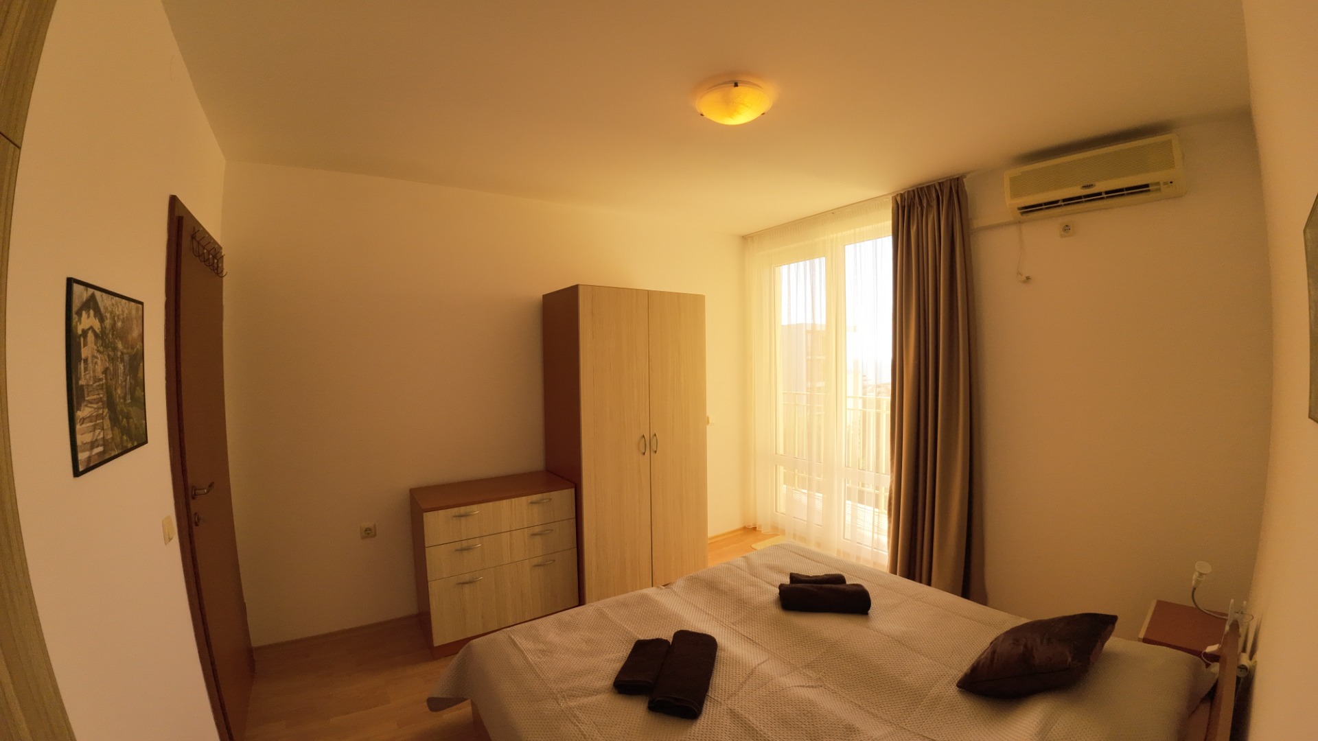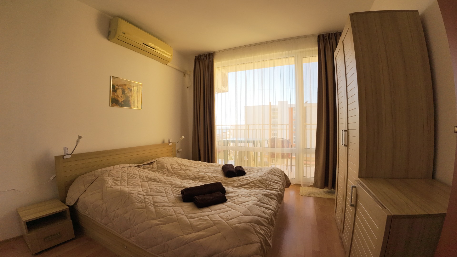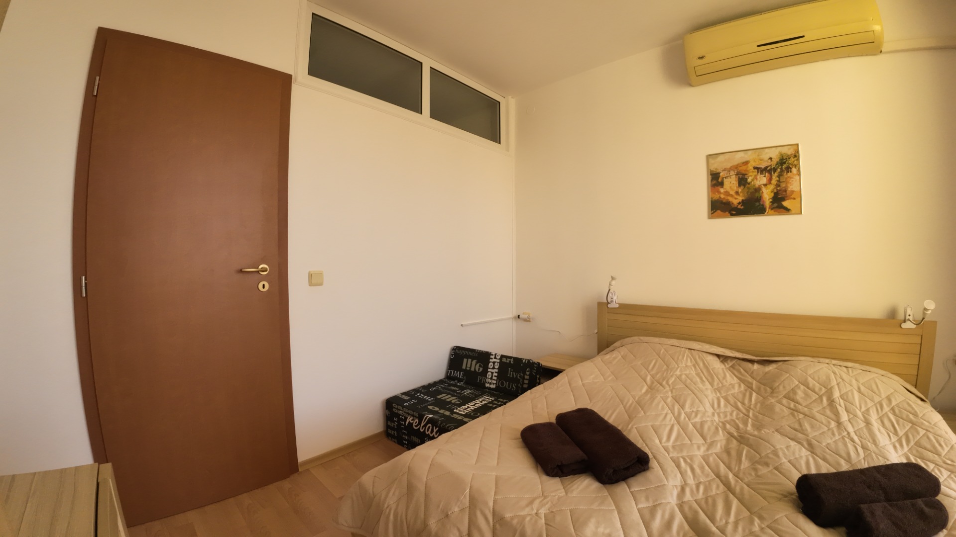 Apartment (1 bedroom with a large double bed, 1 bedroom with two single beds, kitchen with sofa bed + 2 extra beds for children available, bathroom with toilet and balcony). The entire apartment is air-conditioned.