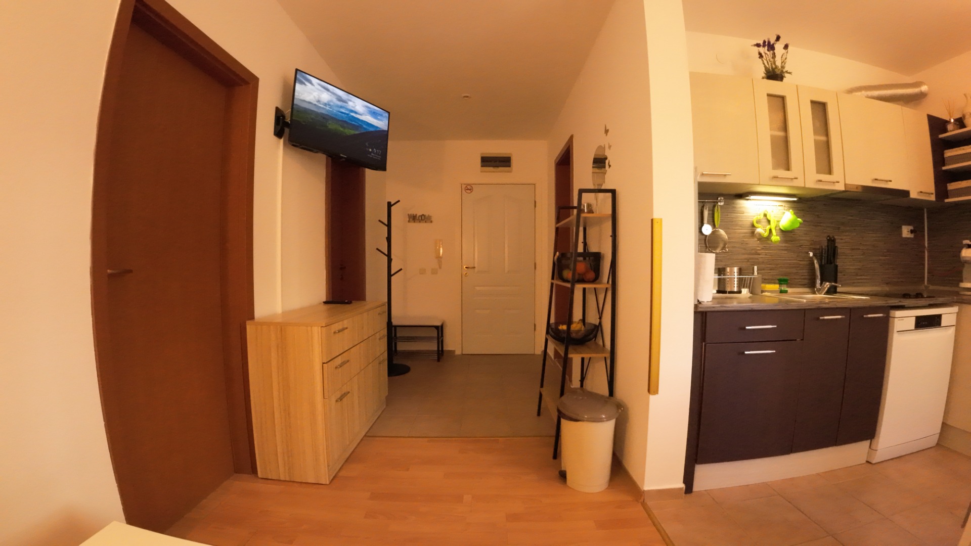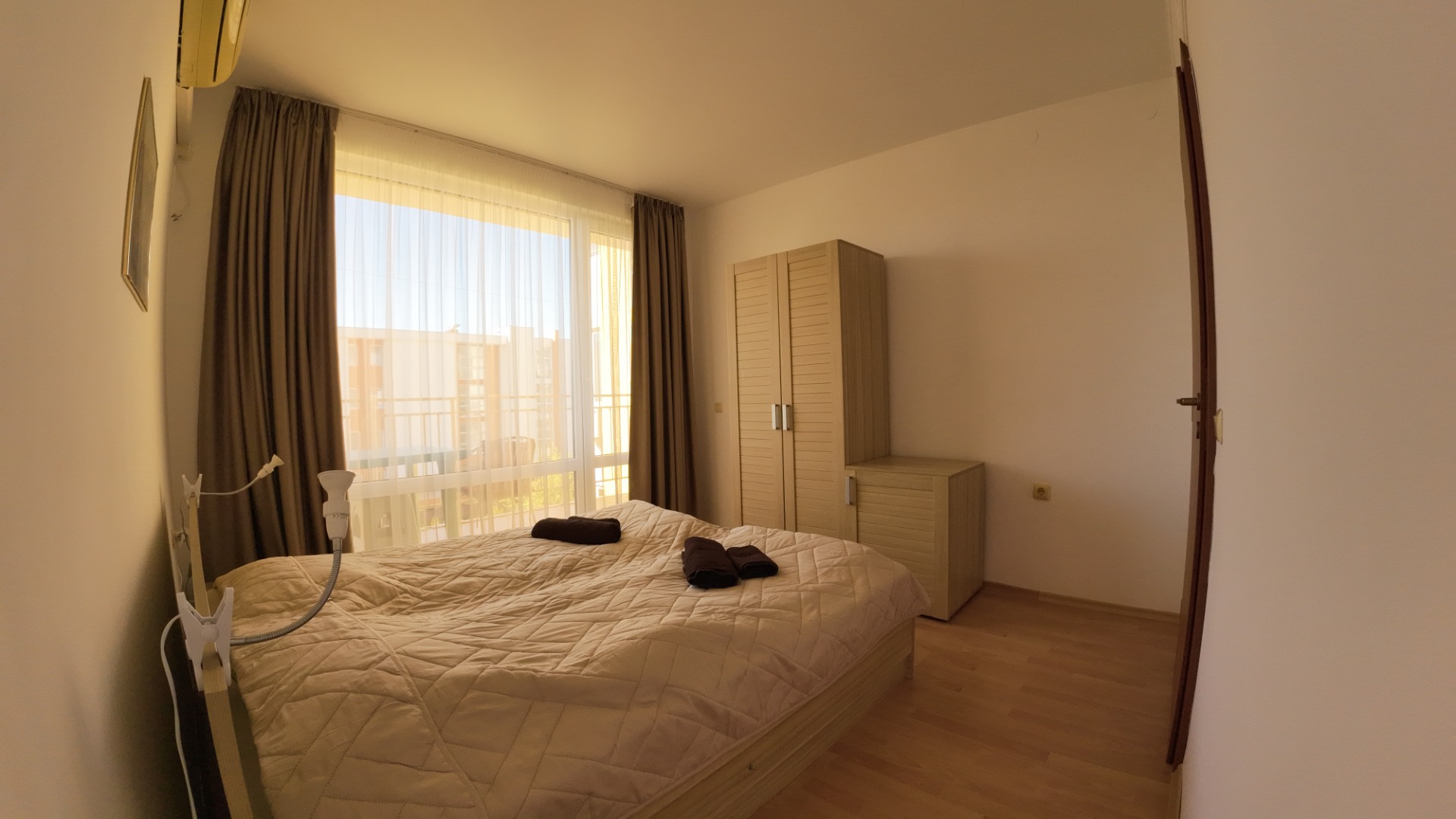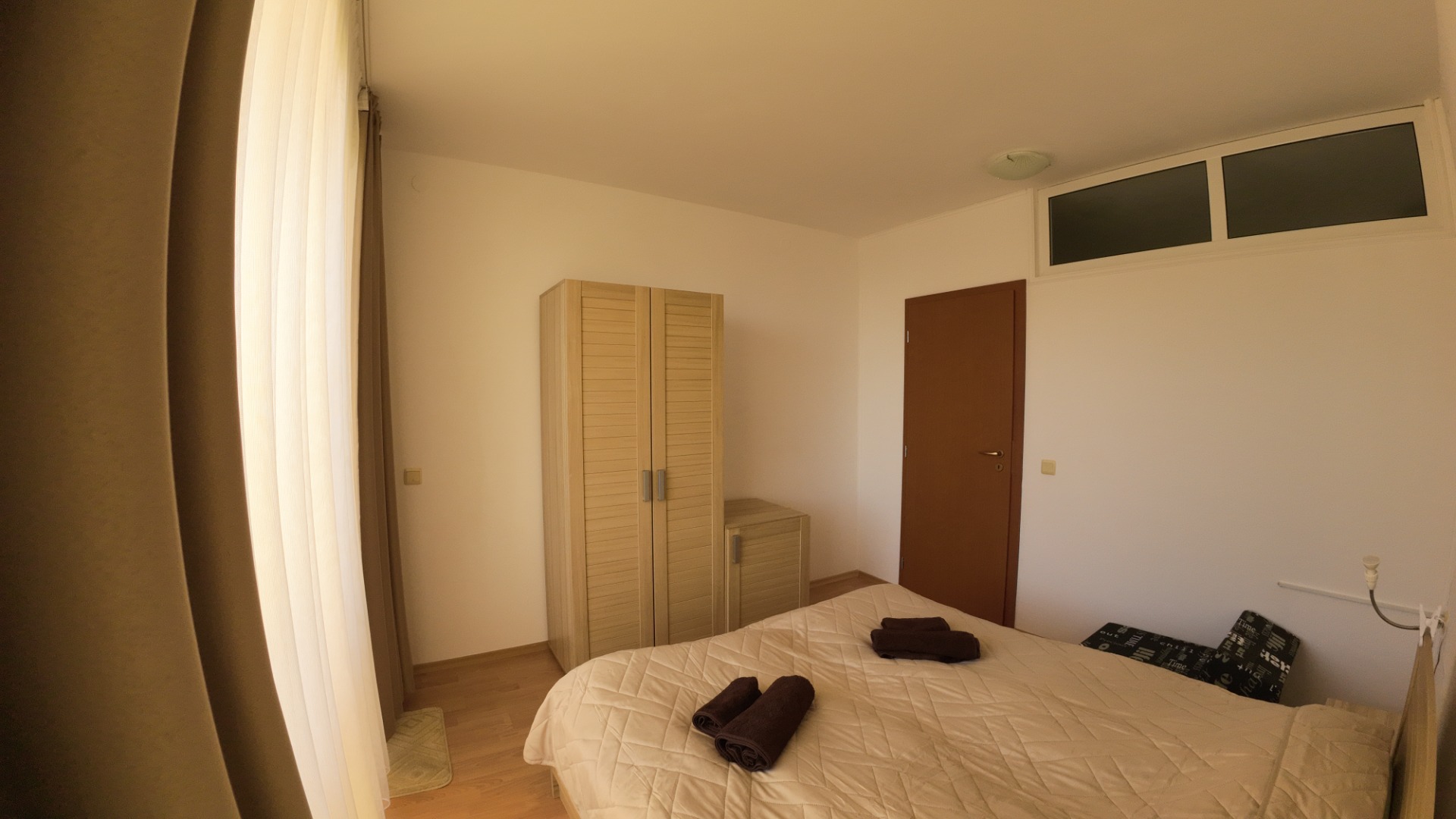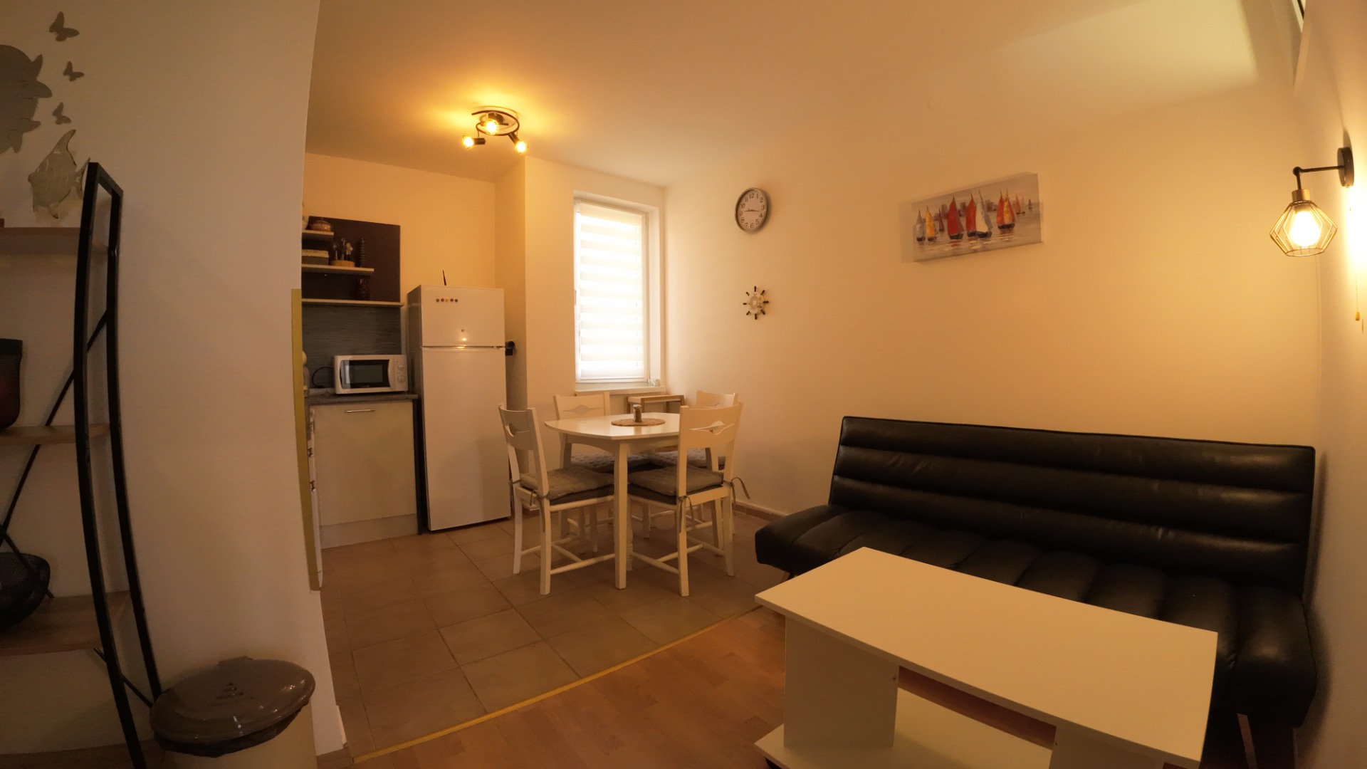 Apartment (1 bedroom with a large double bed, 1 bedroom with two single beds, kitchen with sofa bed + 2 extra beds for children available, bathroom with toilet and balcony). The entire apartment is air-conditioned.
