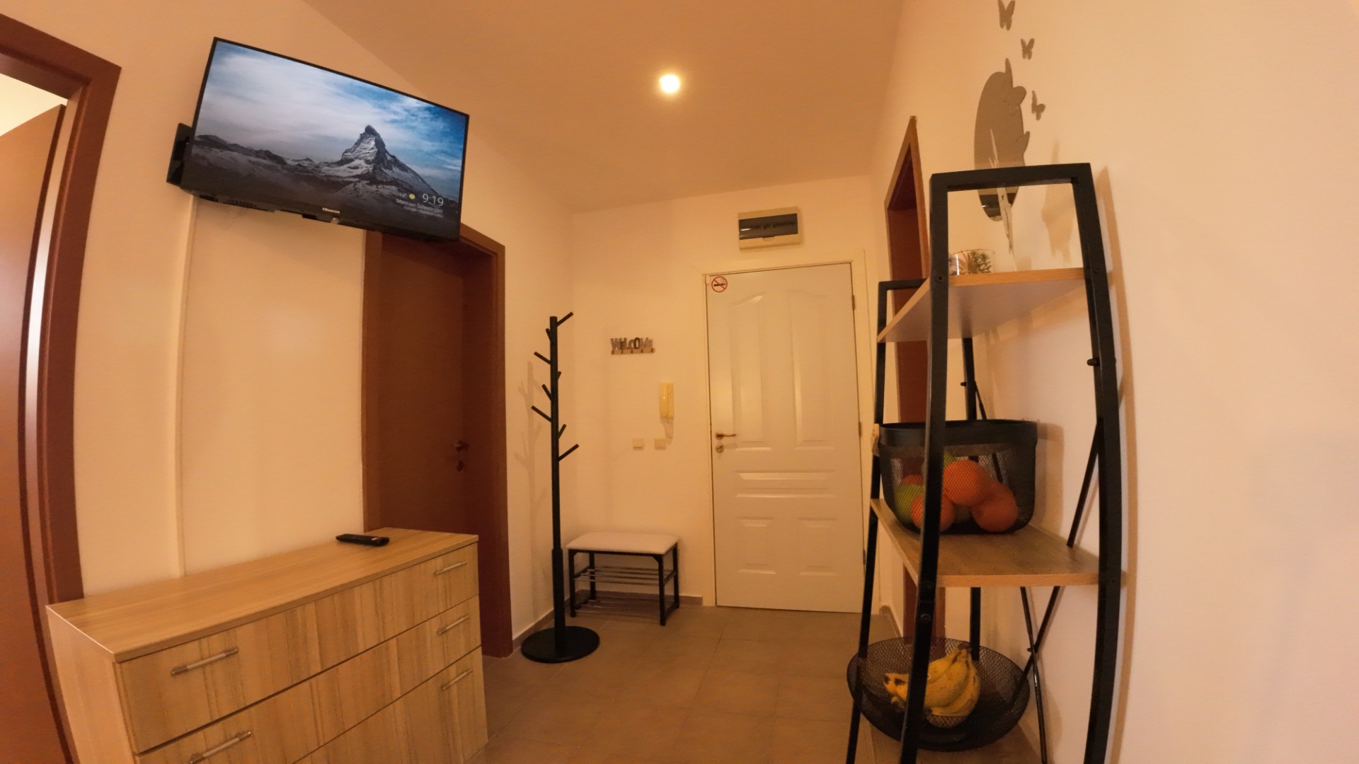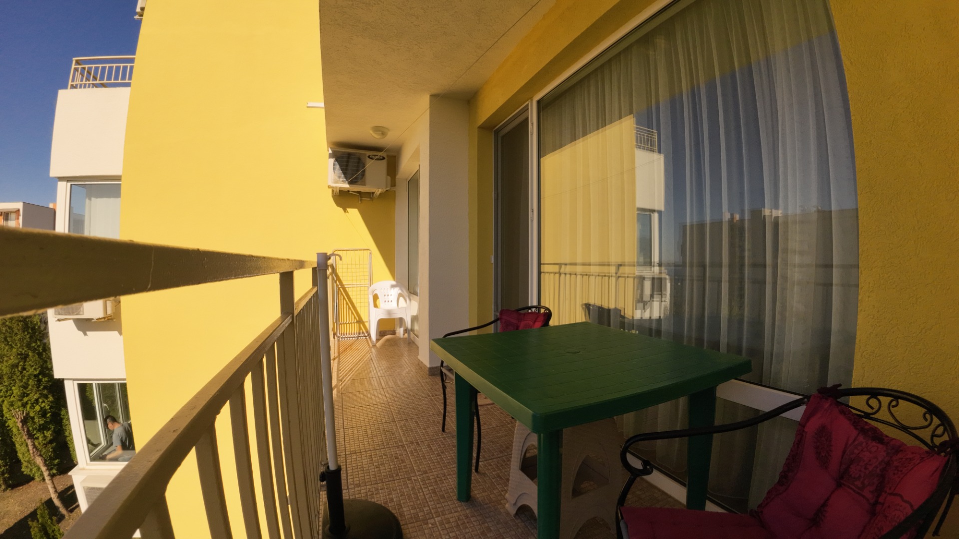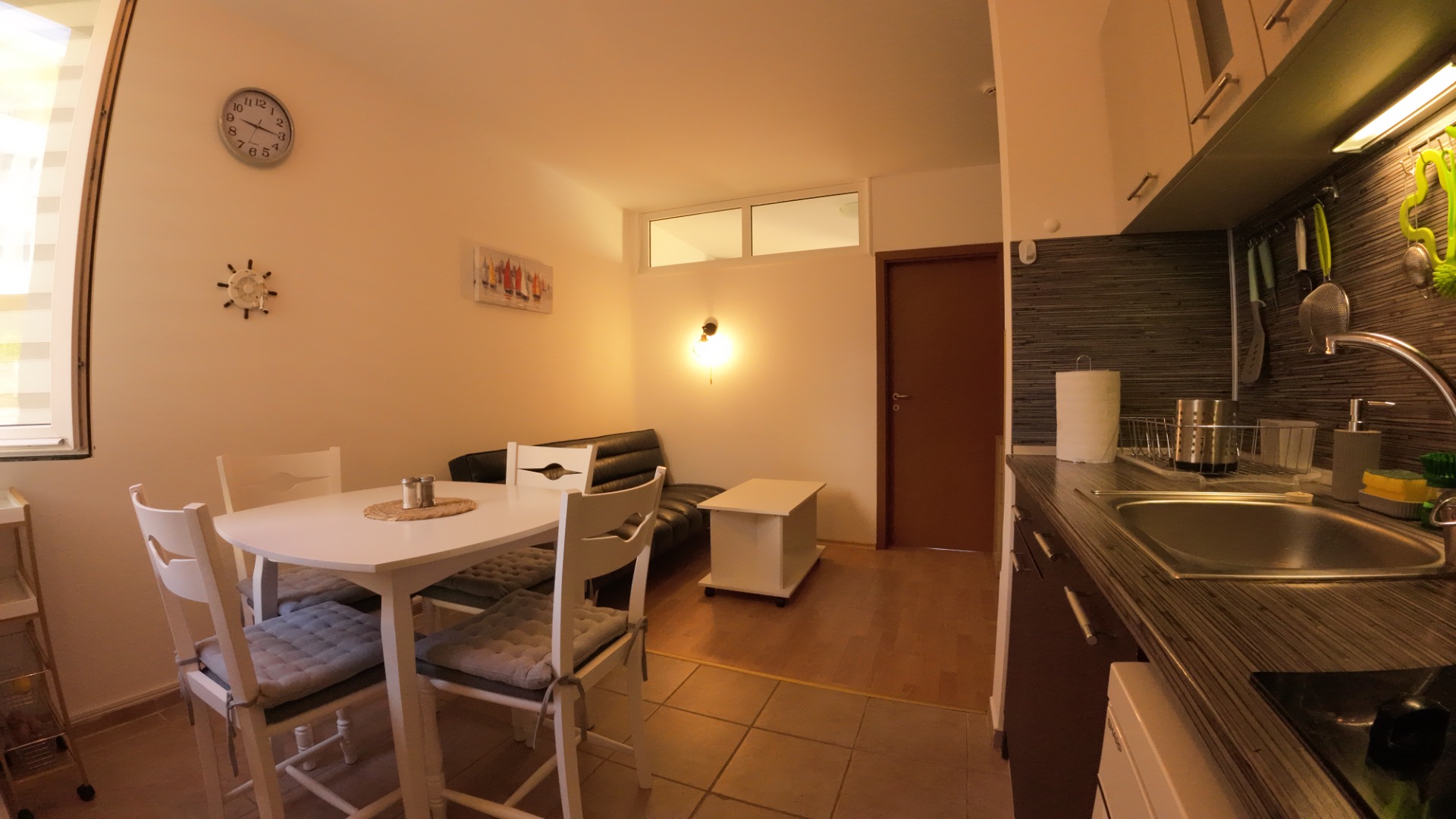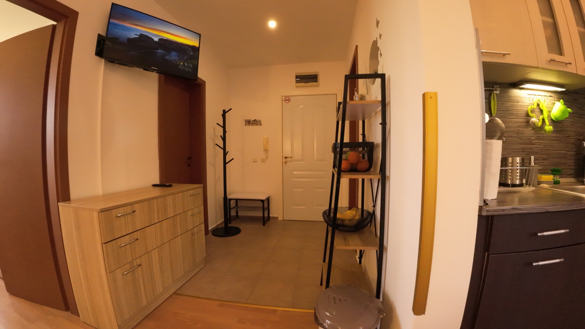 Apartment (1 bedroom with a large double bed, 1 bedroom with two single beds, kitchen with sofa bed + 2 extra beds for children available, bathroom with toilet and balcony). The entire apartment is air-conditioned.