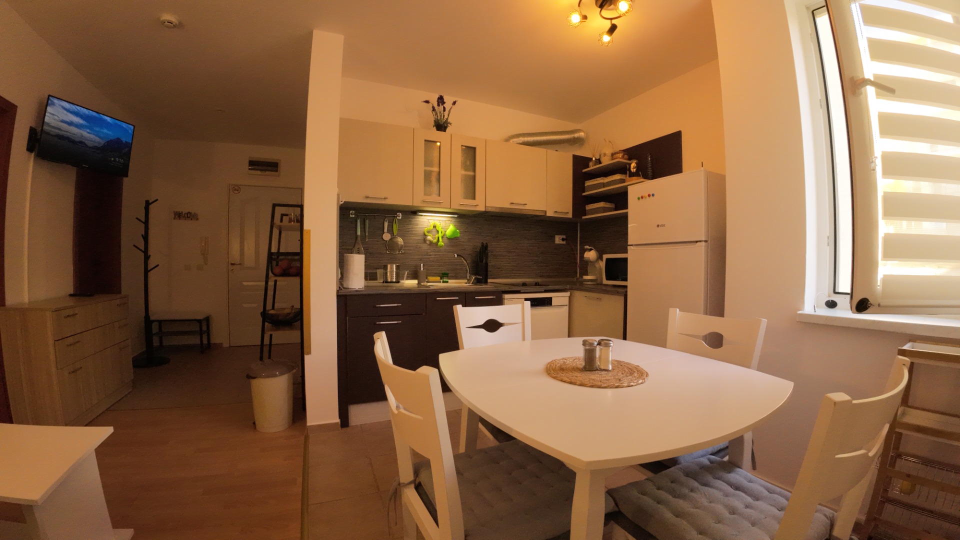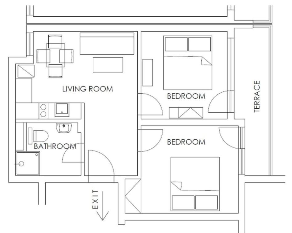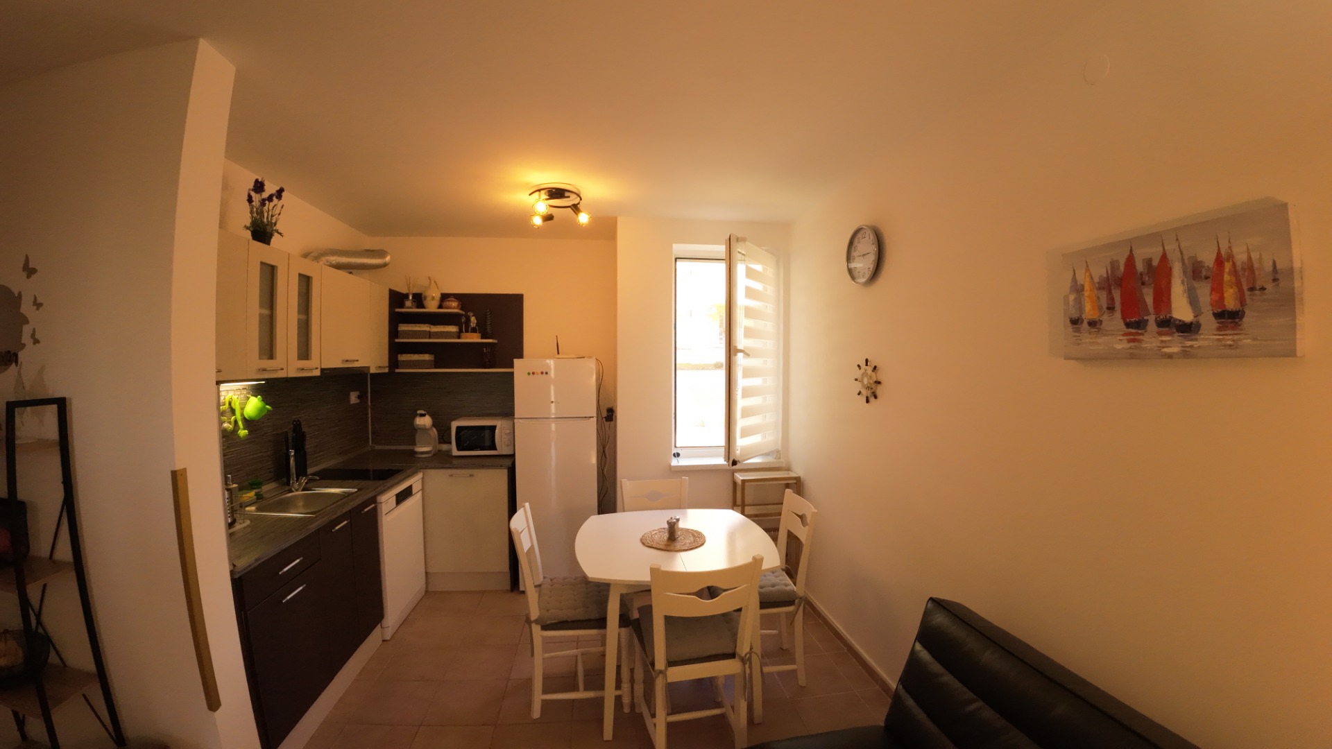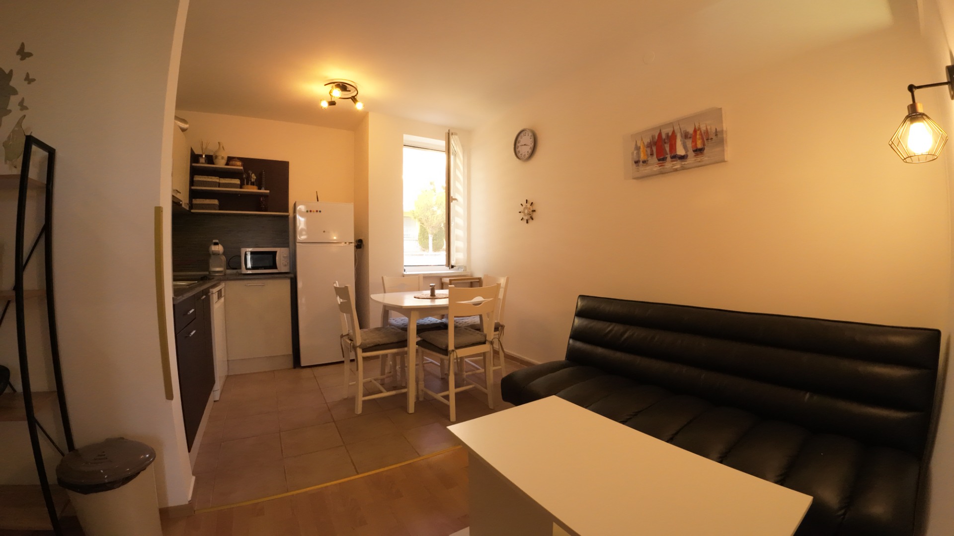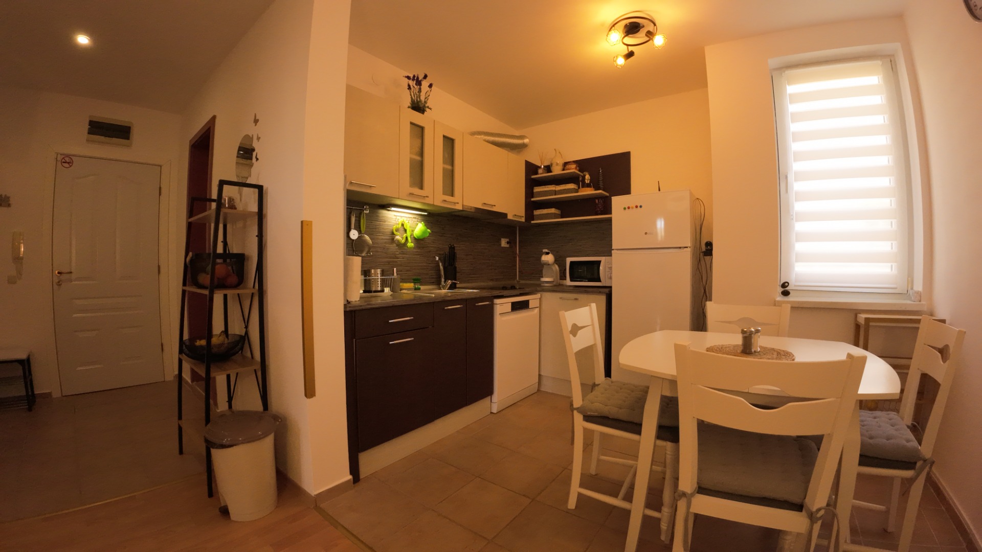 Apartment (1 bedroom with a large double bed, 1 bedroom with two single beds, kitchen with sofa bed + 2 extra beds for children available, bathroom with toilet and balcony). The entire apartment is air-conditioned.