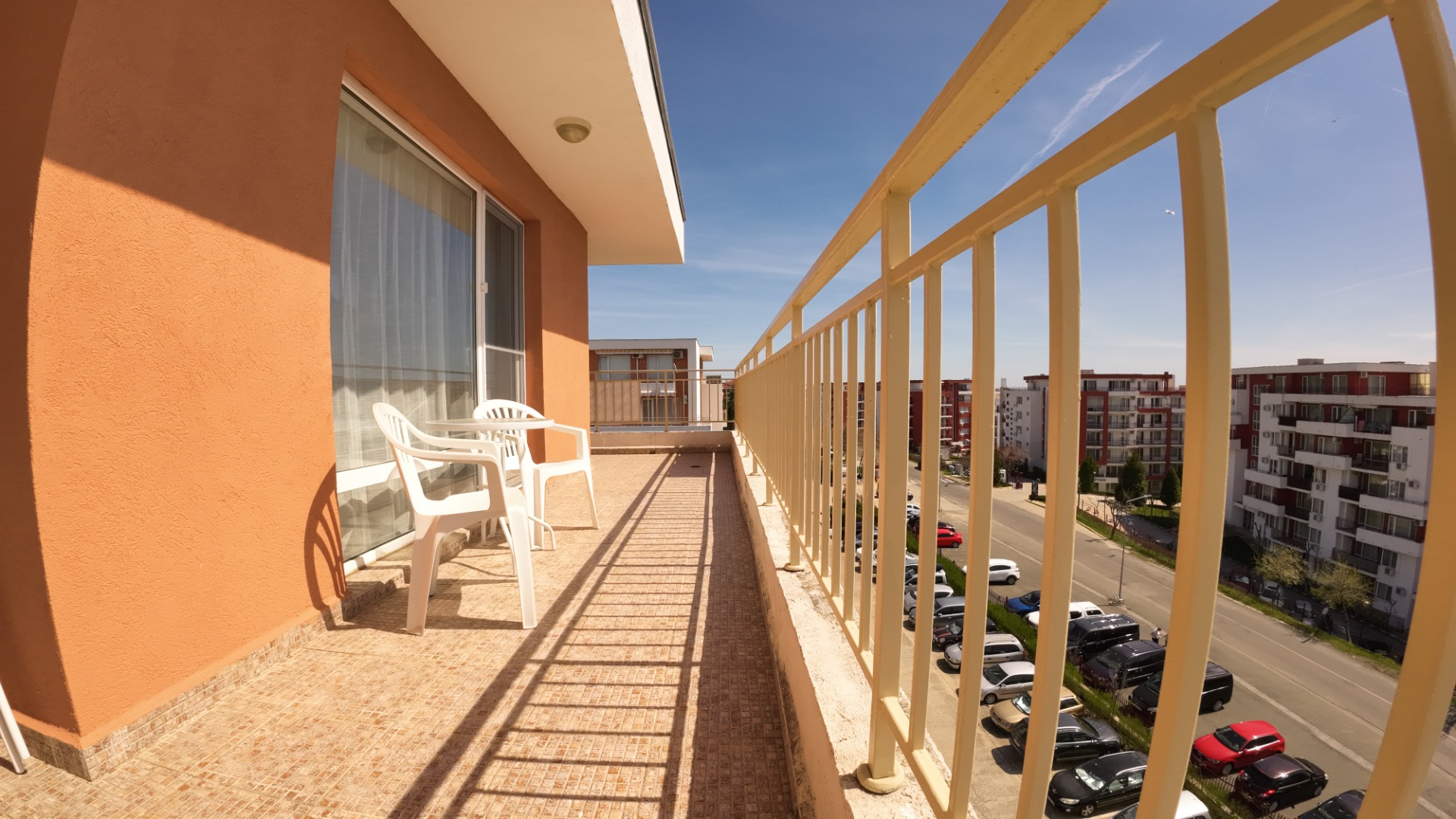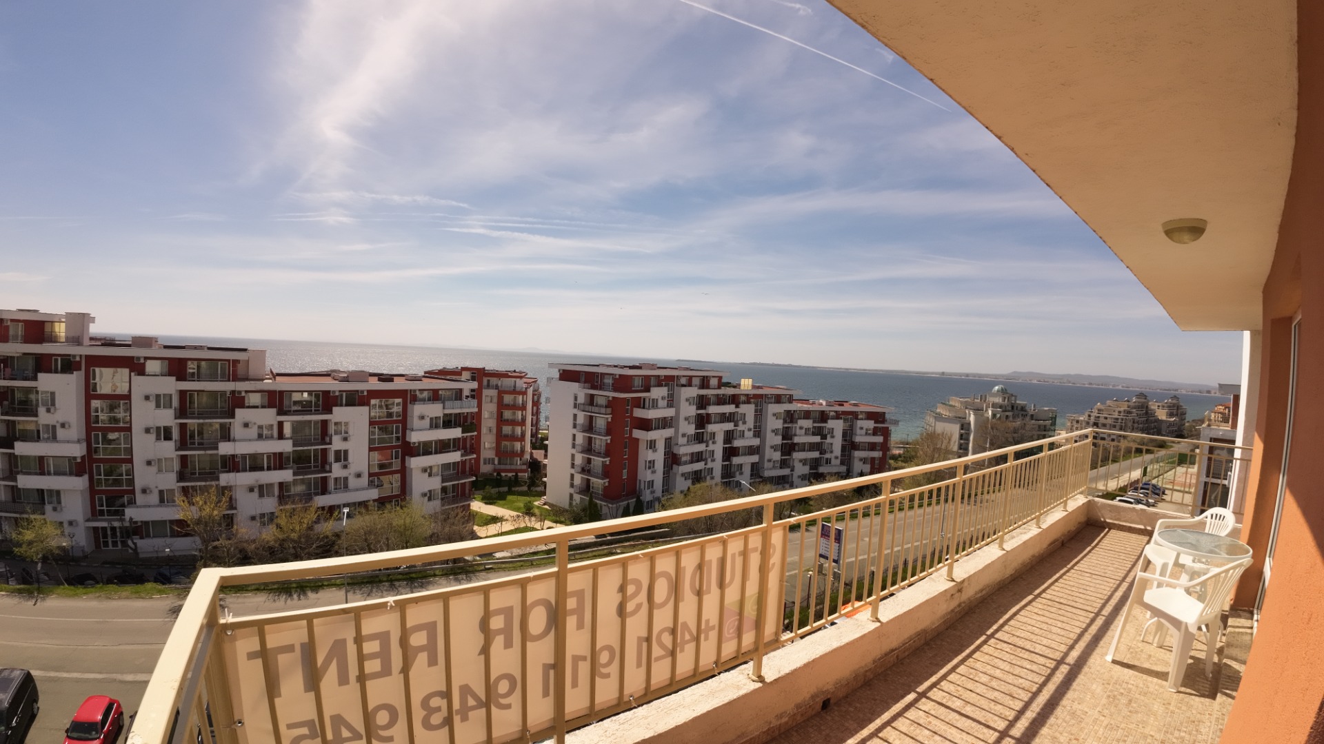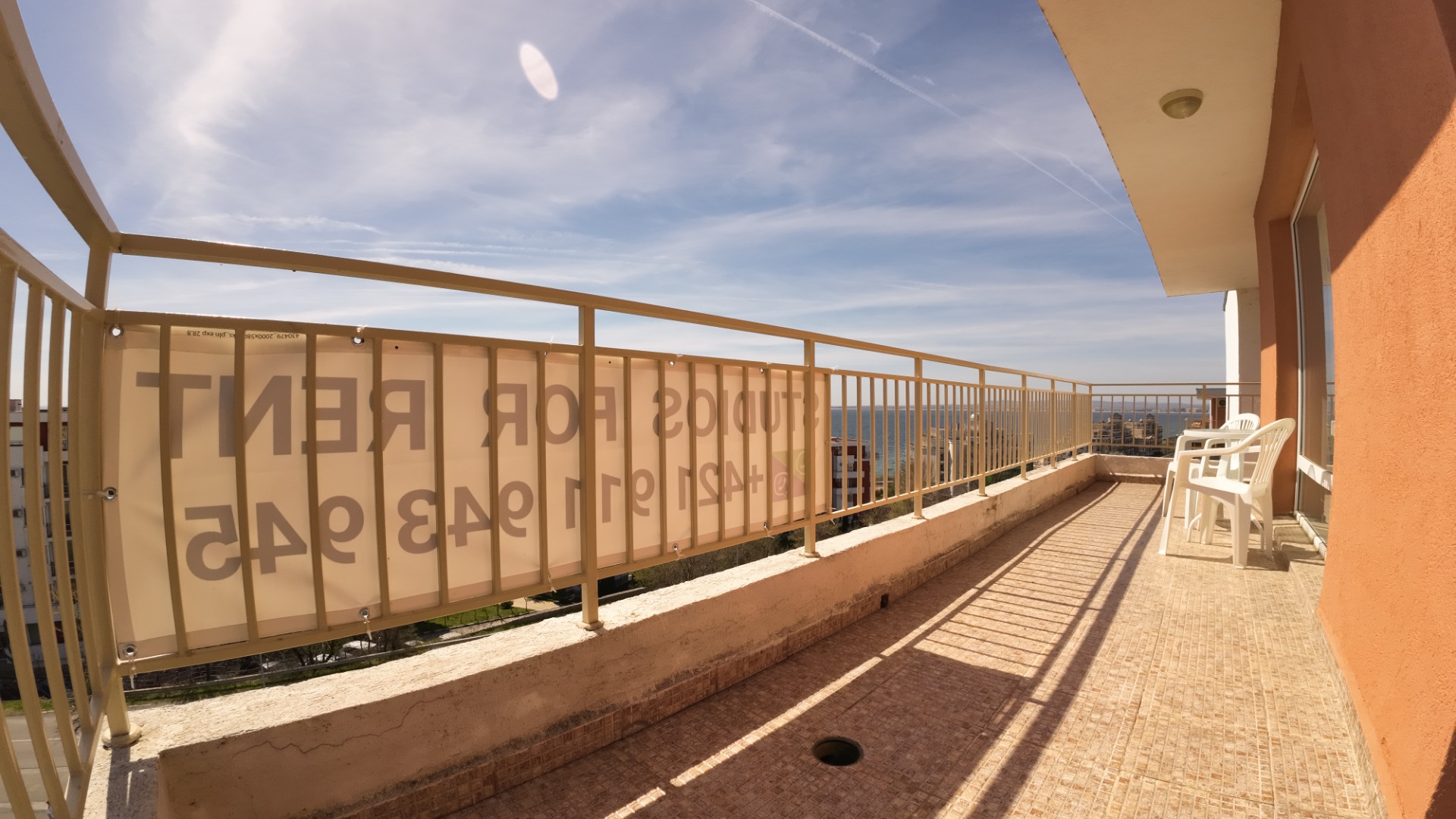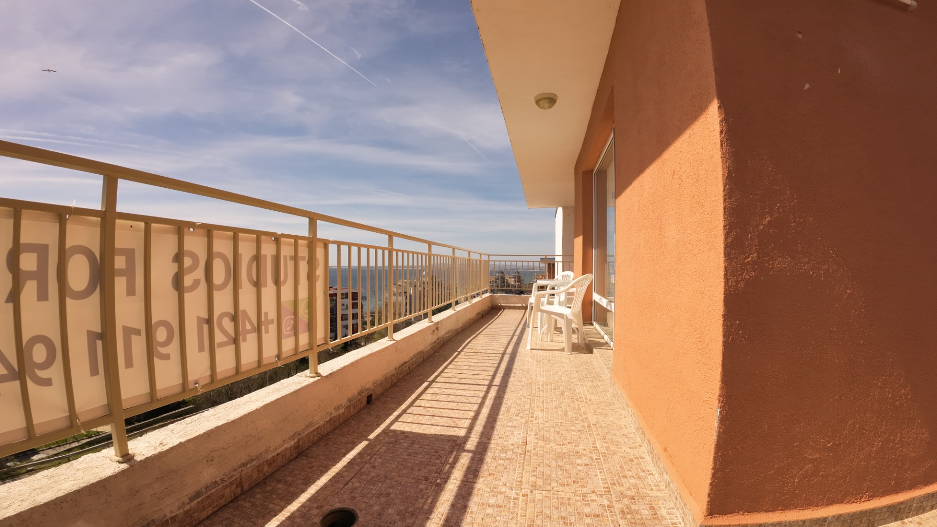 Studio (bedroom with a large double bed + kitchen in the space of the room, bathroom with toilet and large terrace). The entire space is air-conditioned.